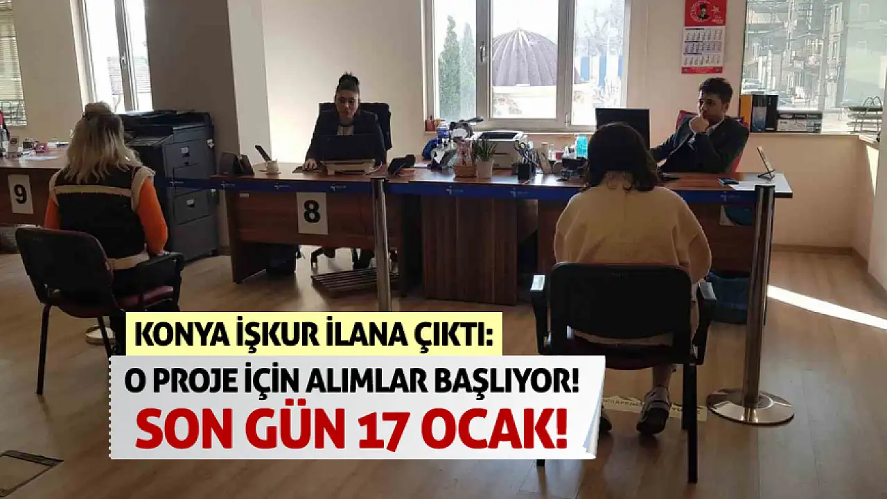 - Konya İŞKUR ilana çıktı: O proje için alımlar başlıyor! Son gün 17 ocak!