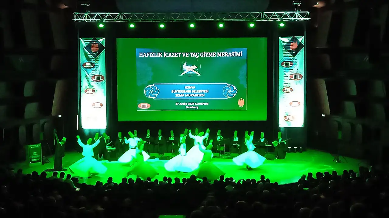 Konya Büyükşehir Belediyesi Türk Tasavvuf Musikisi ve Sema Topluluğu, Fransa'nın Strasbourg kentinde düzenlenen sema mukabelesiyle izleyenlere unutulmaz bir gece yaşattı.