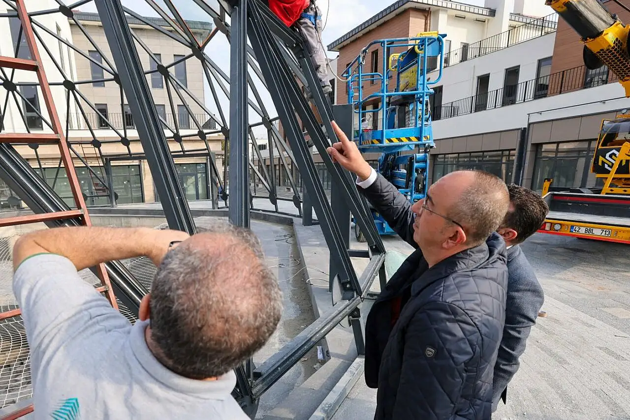 Birinci etabın en dikkat çekici noktası olan jeodezik cam kubbenin montajı da hızla devam ediyor. Paris’teki Louvre Müzesi’ni andıran modern kubbe, altında yer alan Selçuklu döneminin en büyük hamam kalıntısını koruyarak hem tarihe hem de modern mimariye ev sahipliği yapacak. Başkan Kavuş, incelemeleri sonrasında yaptığı açıklamada, “Suriçi, sadece Konya için değil tüm Türkiye için büyük ve önemli bir dönüşüm alanı. Biz burada bir etapta daha artık son aşamadayız. İnşaat tamamen bitti, sadece kubbenin tamamlanmasını bekliyoruz. Kasım ayının sonunda Sayın Bakanımız Murat Kurum’un katılımıyla açılışını gerçekleştirmeyi planlıyoruz. Bu büyük proje ile her zaman yakından ilgilenmiş olan Sayın Bakanımız, yoğun programındaki ilk fırsatta şehrimize gelip buranın açılışını gerçekleştirecek inşallah.” dedi.