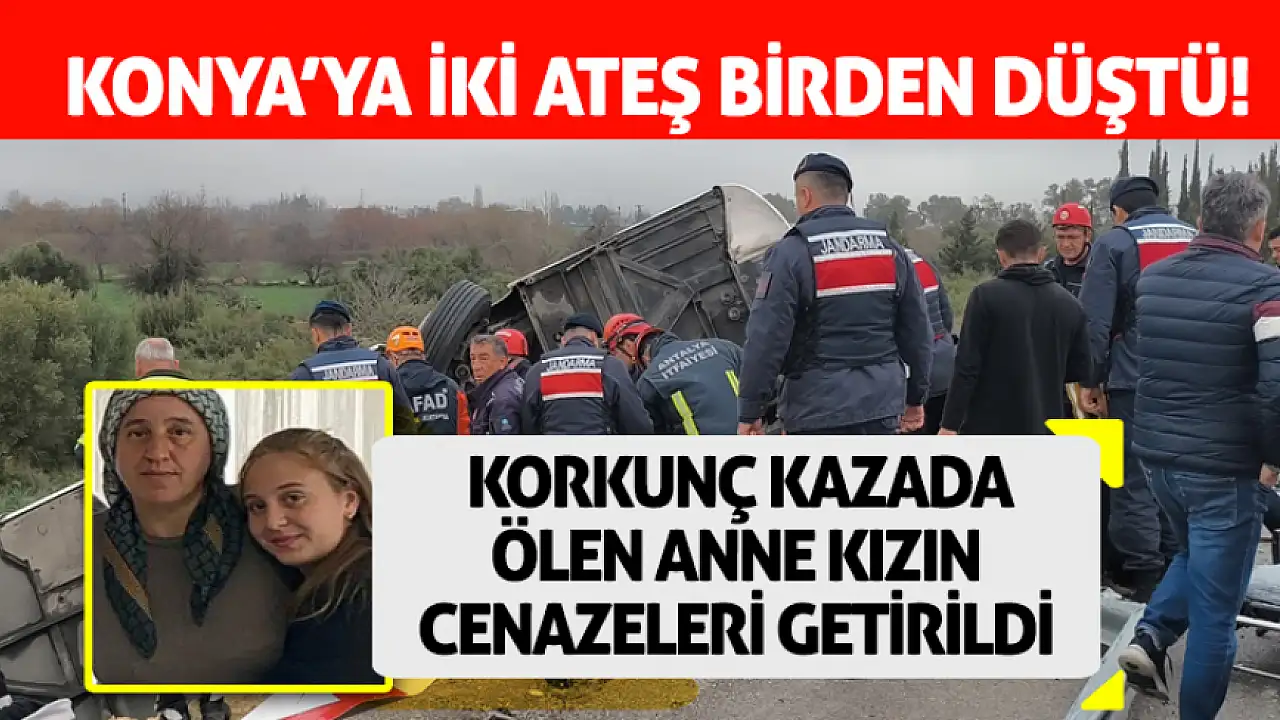 Konya'ya iki ateş birden düştü! Korkunç kazada ölen anne kızın cenazeleri getirildi