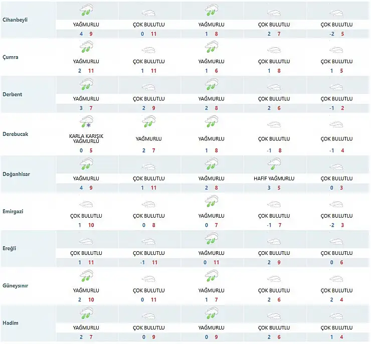 Türkiye genelinde etkili olan 'Zemheri' soğukları Konya'yı saracak. Meteoroloji'den alınan son verilere göre Konya'da puslu hava yerini yağışa bırakırken 26 ilçede yağmur, yüksek kesimlerde ise karla karışık yağış bekleniyor.