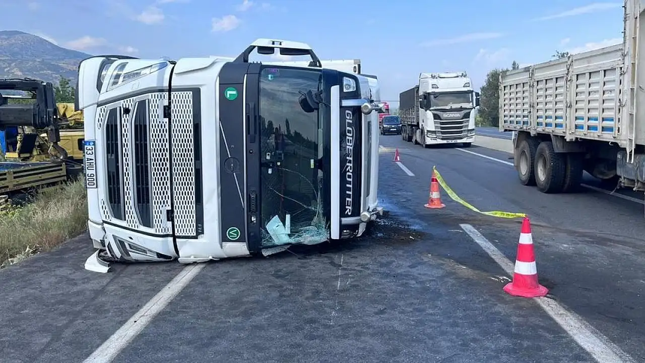 E.Ö. (51) idaresindeki 33 AHU 900 plakalı tır, Afyonkarahisar-Konya kara yolu Eber köyü yakınlarında devrildi.