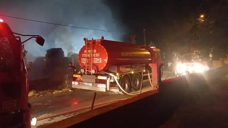 Ortakaraören Mahallesi'ndeki balya samanlarının bulunduğu alanda henüz belirlenemeyen nedenle yangın çıktı.