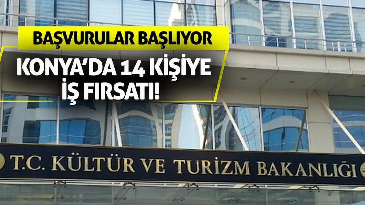 Kültür ve Turizm Bakanlığı, istihdama katkı sağlamak amacıyla yeni personel alımlarını duyurdu.Türkiye genelinde yapılacak alımlar kapsamında Konya'da da farklı kadrolarda toplam 14 kişi işe alınacak.