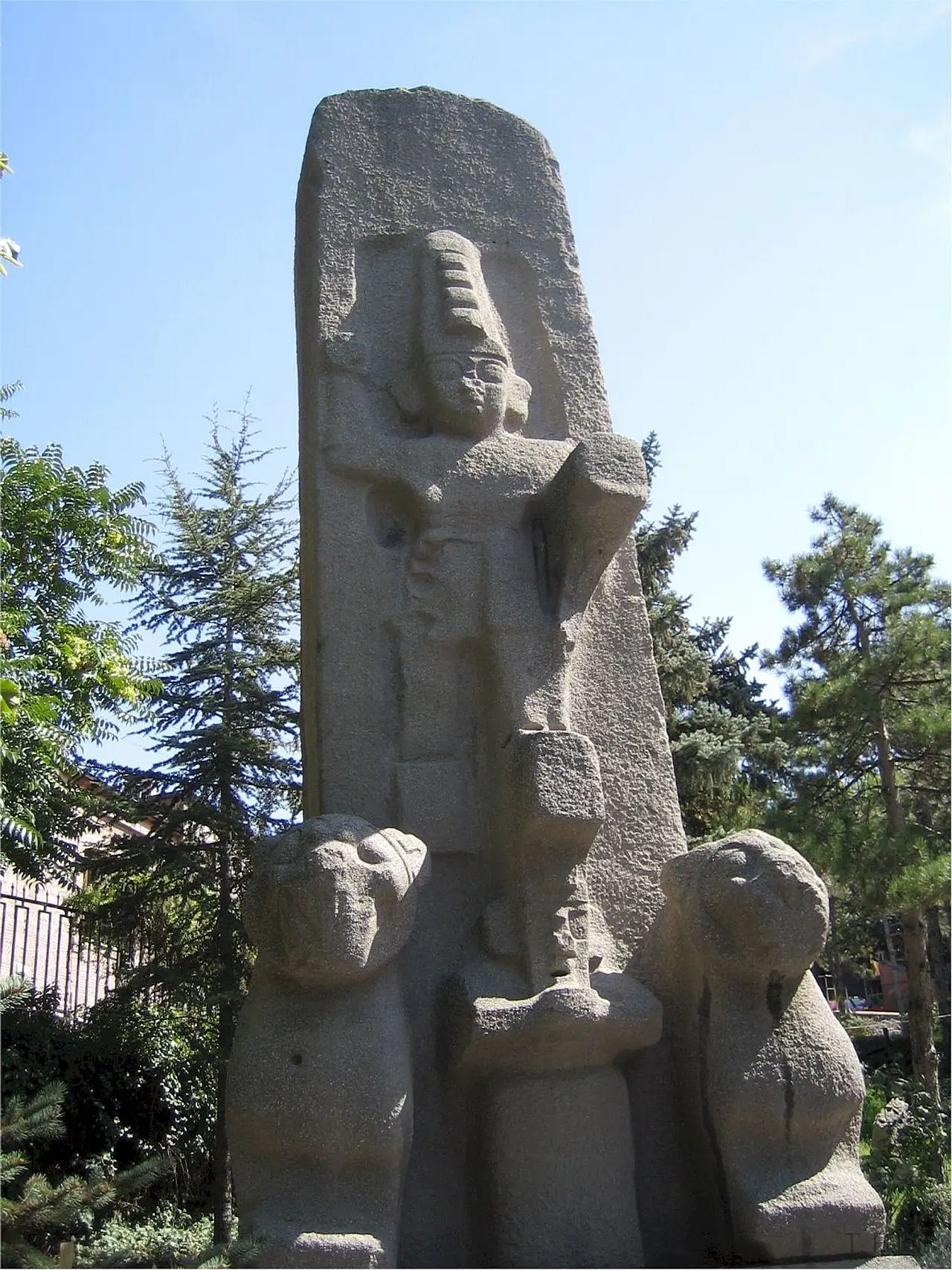 Anıtın üzerindeki ana figür, Hitit Kralı Muvattali tarafından yaptırıldığı bilinen, büyük bir tanrıyı dağ tapınağında iki aslan arasında gösteriyor. Bu tanrı, bir ayağını aslanın üzerine, diğer (sol) ayağını ise dağ tanrısının üzerine basmış durumda. Dağ tanrısının hemen yanında, diğer aslana benzer ikinci bir aslan tasviri de bulunuyor.