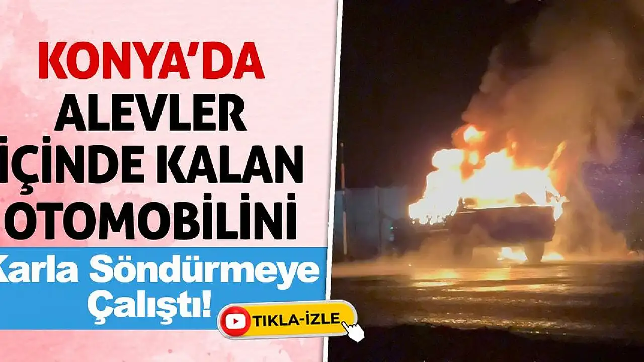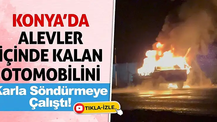 - Konya'da alevler içinde kalan otomobilini karla söndürmeye çalıştı!
