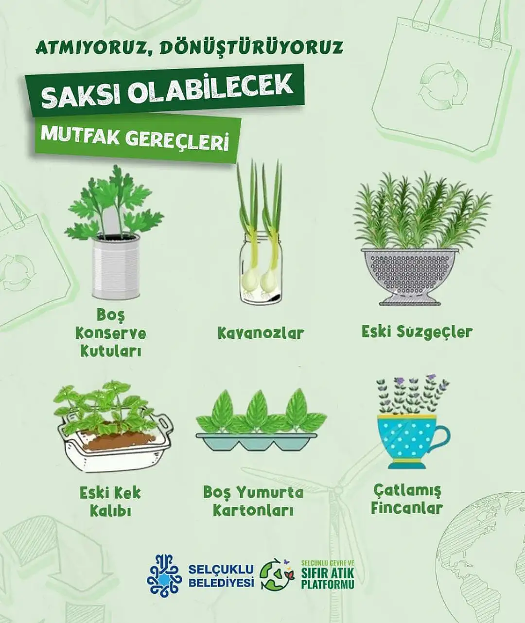 , sıfır atık bilincini yaygınlaştırmak amacıyla dikkat çekici bir farkındalık çalışmasına imza attı. “Atmıyoruz, Dönüştürüyoruz” sloganıyla hayata geçirilen projede, evlerde kullanılmayan mutfak gereçlerinin saksı olarak değerlendirilmesi teşvik ediliyor.