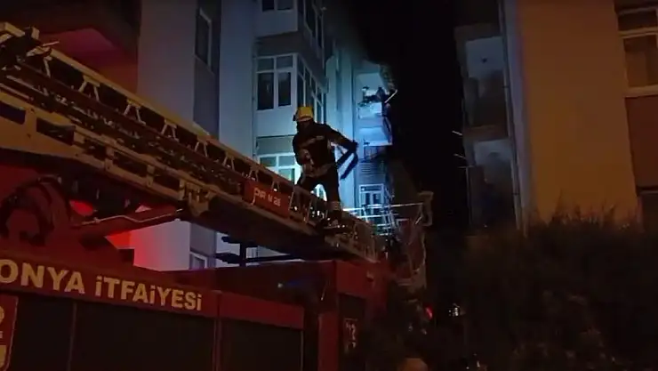 Konya'da balkonda mahsur kalan kedi kurtarıldı