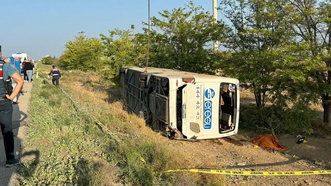 Kaza, sabah erken saatlerde Konya Adana Karayolu Ereğli ilçesi Bulgurluk mevkisi yakınlarında meydana geldi. Edinilen bilgiye göre, Adana’dan Konya istikametine seyir halinde B.İ. idaresindeki Lüks Ereğli firmasına ait 42 ERG 53 plakalı Setra marka yolcu otobüsü, kontrolden çıkarak şarampole devrildi.