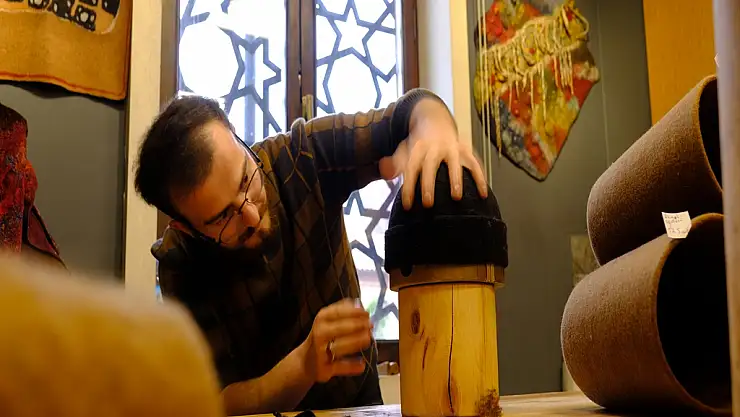 Babasının dedesinin 130 yıl önce başladığı keçeciliği 4'üncü kuşak olarak devam ettiren Yunus Girgiç (34), İrfa Medeniyeti Araştırma ve Kültür Merkezi'ndeki atölyesinde, Hazreti Mevlana'nın 752'nci Vuslat Yıl Dönümü Uluslararası Anma Törenleri nedeniyle yoğunluk yaşıyor.