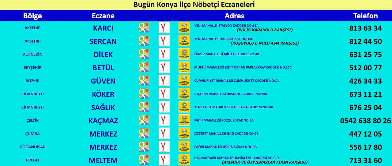 - Konya'da bugün hangi eczane nöbetçi?