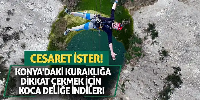 CESARET İSTER! KONYA'DAKİ KURAKLIĞA DİKKAT ÇEKMEK İÇİN KOCA DELİĞE İNDİLER!