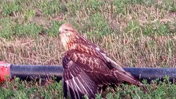 Rahim Akdeniz ve arkadaşı Numan Atabek, tarlalarını kontrol etmek üzere gittikleri sırada sulama borusu yakınlarında uçamayan Kızıl Şahin'i fark etti. Şahin'in bitkin ve halsiz olduğunu gören Akdeniz, hayvanı aracına alarak evine götürdü ve bir süre besleyip bakımını yaptı. Kısa sürede durumu toparlayan Şahin, daha sonra Ereğli Doğa Koruma ve Milli Parklar Müdürlüğü ekiplerine teslim edildi. Kızıl Şahin’in tedavisinin ardından doğal yaşam alanına tekrar bırakılacağı öğrenildi.