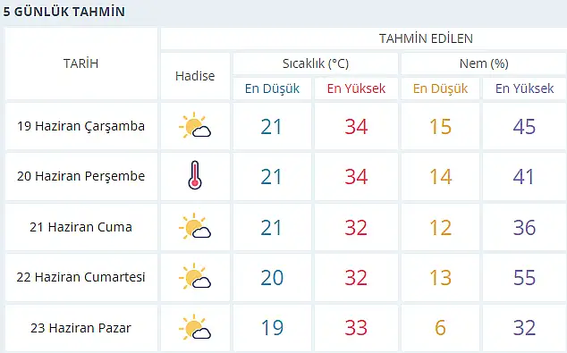 Tahminlere göre Konya’da hava sıcaklıkları günden güne yükselişe geçecek. 20-23 Haziran tarihleri arasında Konyalılar 32-35 dereceleri yaşayacak.