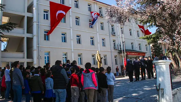 Tören, Hükümet Konağı önünde anıta çelenk koyulmasıyla başladı.Daha sonra saygı duruşunda bulunularak İstiklal Marşı okundu.