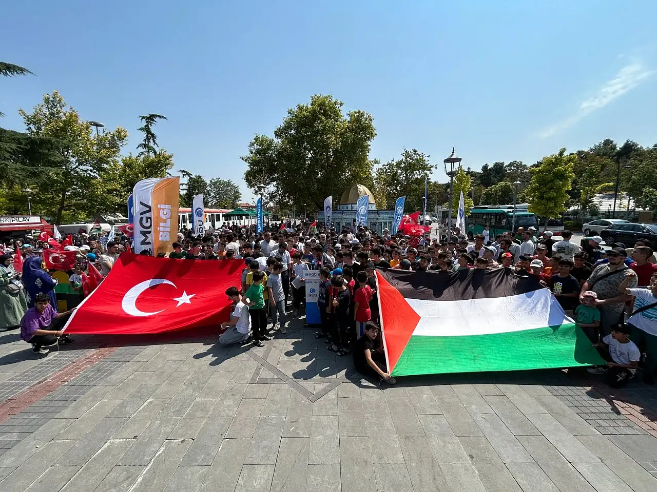 Kültürpark'ta çoğunluğu çocuklardan oluşan kalabalık, Türkiye ve Filistin bayrakları açarak Gazze'deki yaşıtlarına destek verdi.