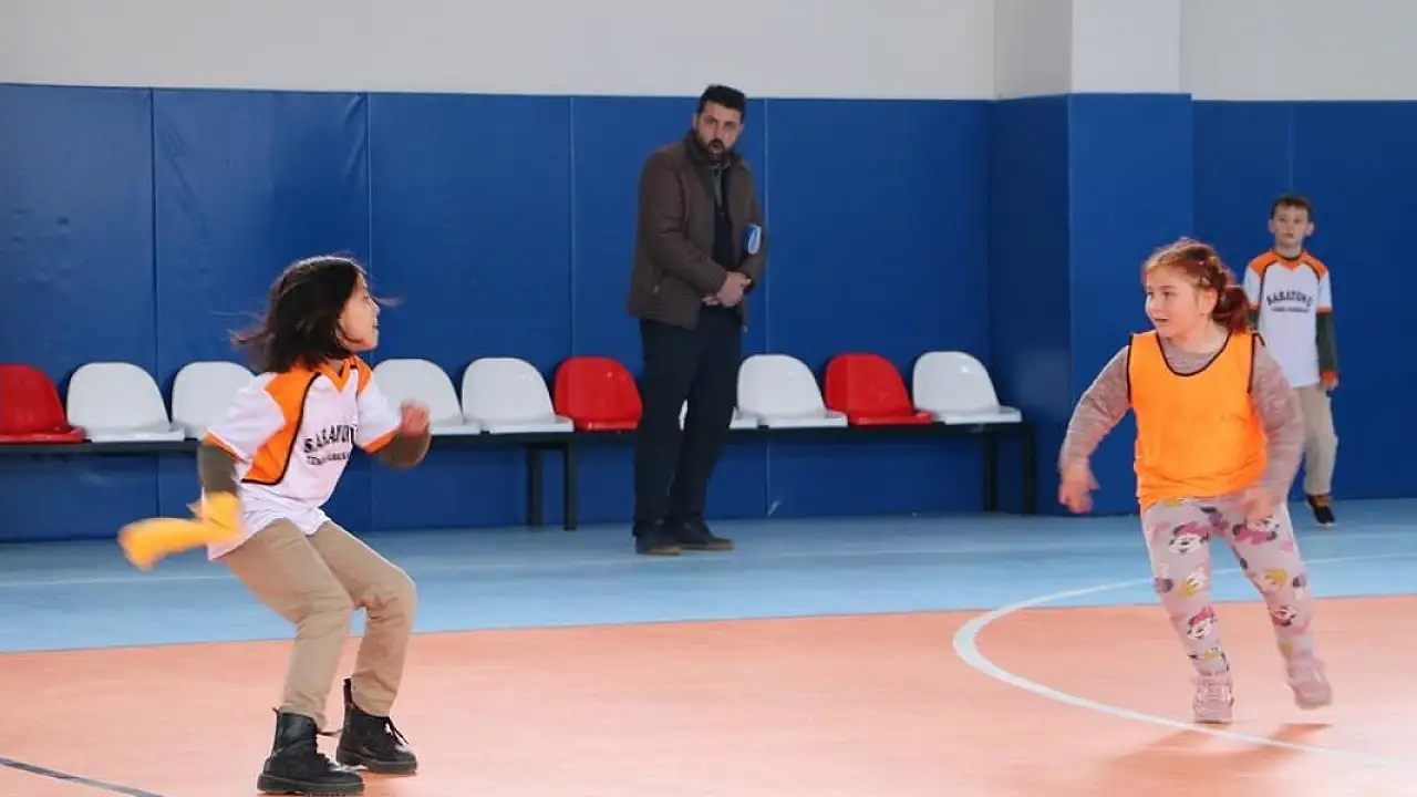 Kapalı Spor Salonu'nundaki yarışmada, çocuklar mendil kapmaca ve seksek oynadı.