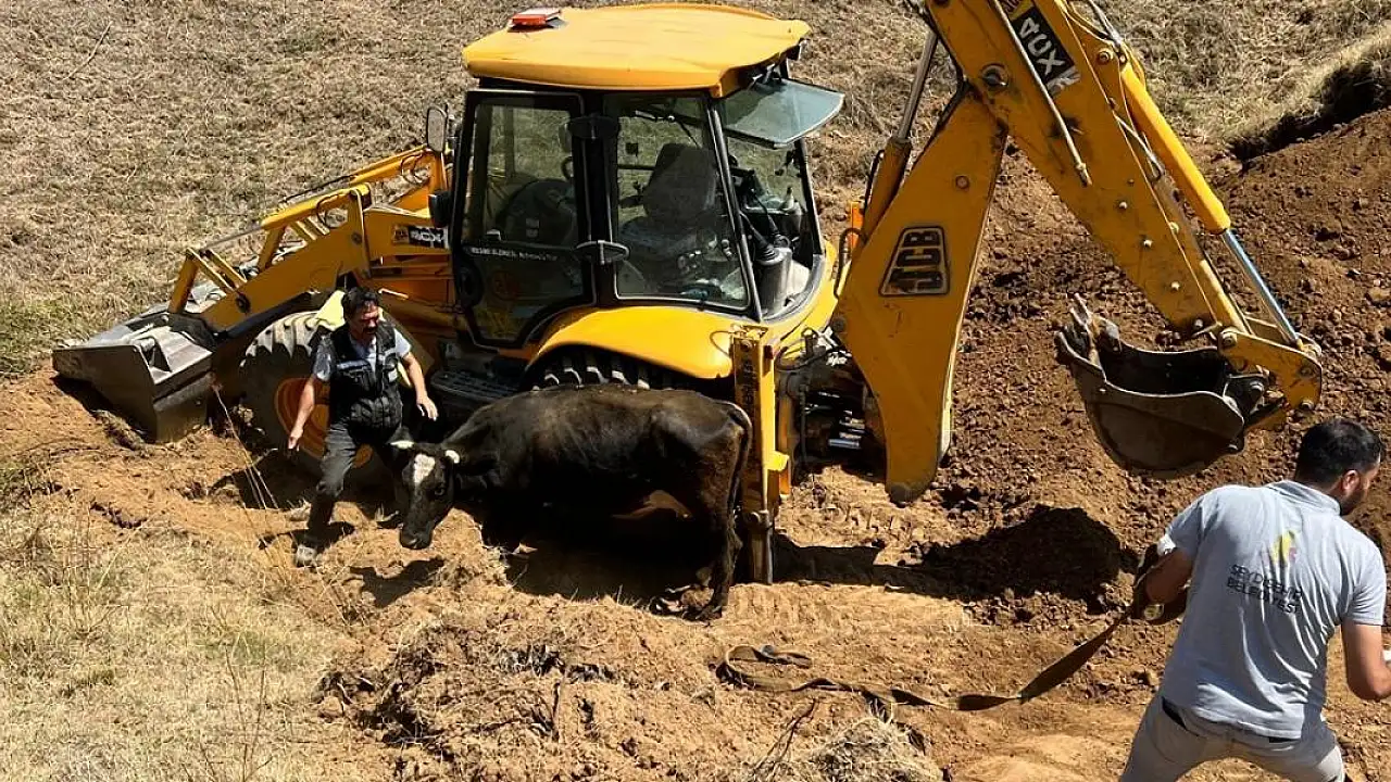 Ekipler, mahsur kalan ineği kepçe yardımıyla düştüğü çukurdan 2 saatlik çalışmanın ardından çıkarttı. Sonrasında ise bölgede bulunan doğal oluşum çukurları kapattı.