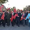 Vatandaşlar, bando eşliğinde marşlarla, Anıt Meydanı'ndaki Atatürk Anıtı'na yürüdü.
