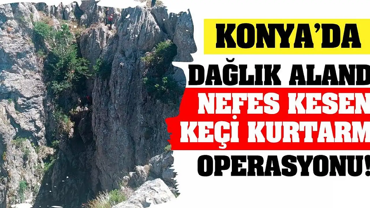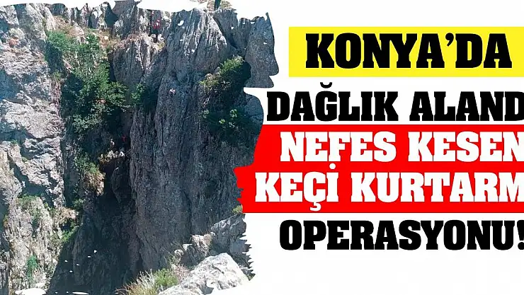 Konya'da dağlık alanda nefes kesen keçi kurtarma operasyonu