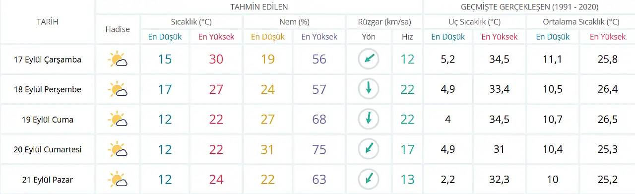 Yapılan son tahminlere göre Konya merkezde en düşük ve en yüksek sıcaklık dereceleri ise şöyle olacak: