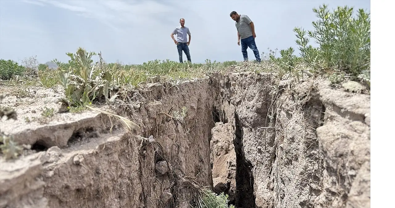 Kuraklıkla ovada oluşumu sıklıkla gözlenmeye başlayan yarıklar, yerleşim yerlerini de tehdit ediyor. En son Adakale Mahallesi'nde görülen, 2,5 kilometre uzunluğundaki yarıklar, bölgede yaşayanları tedirgin etti.