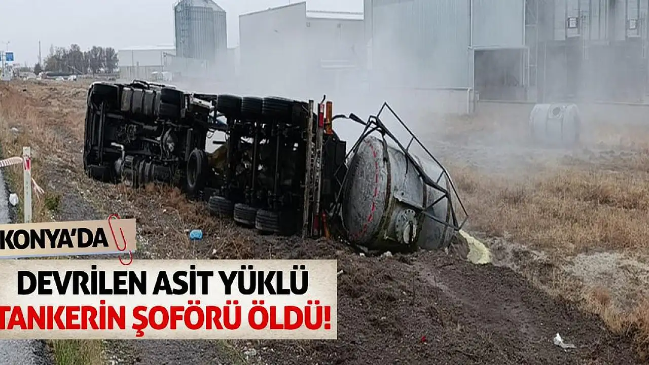 Konya'da devrilen asit yüklü tankerin şoförü öldü!