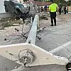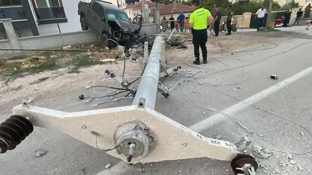 - Konya'da direğe çarpan pikap bahçe duvarında asılı kaldı!