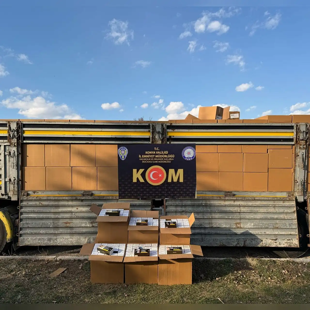 Konya'da durdurulan tırda milyonluk makaron ele geçirildi!