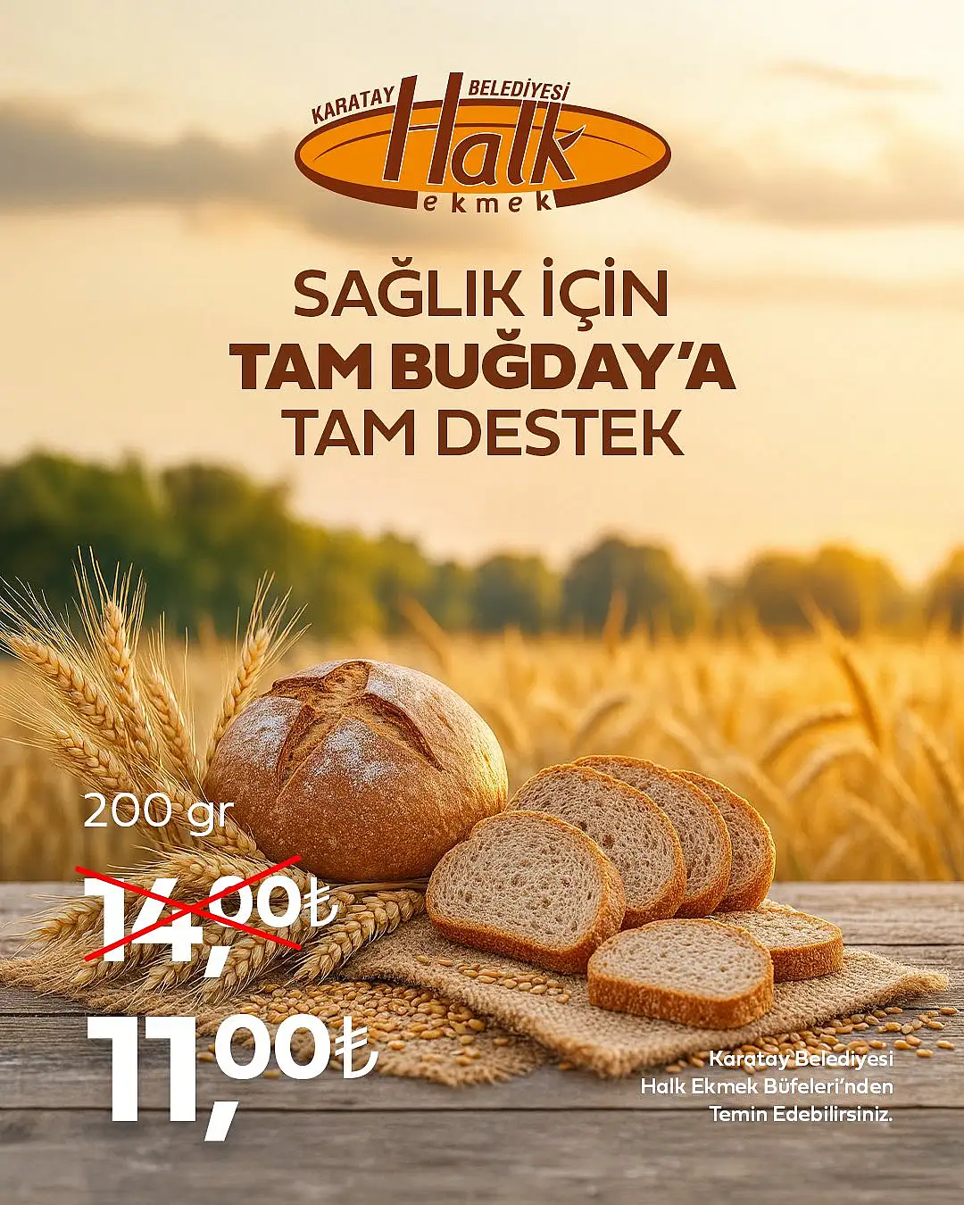 Bu sorumlulukla Karatay Belediyesi Halk Ekmek marifetiyle insan sağlığında önemli bir yer tutan tam buğday ekmeği için indirim…
