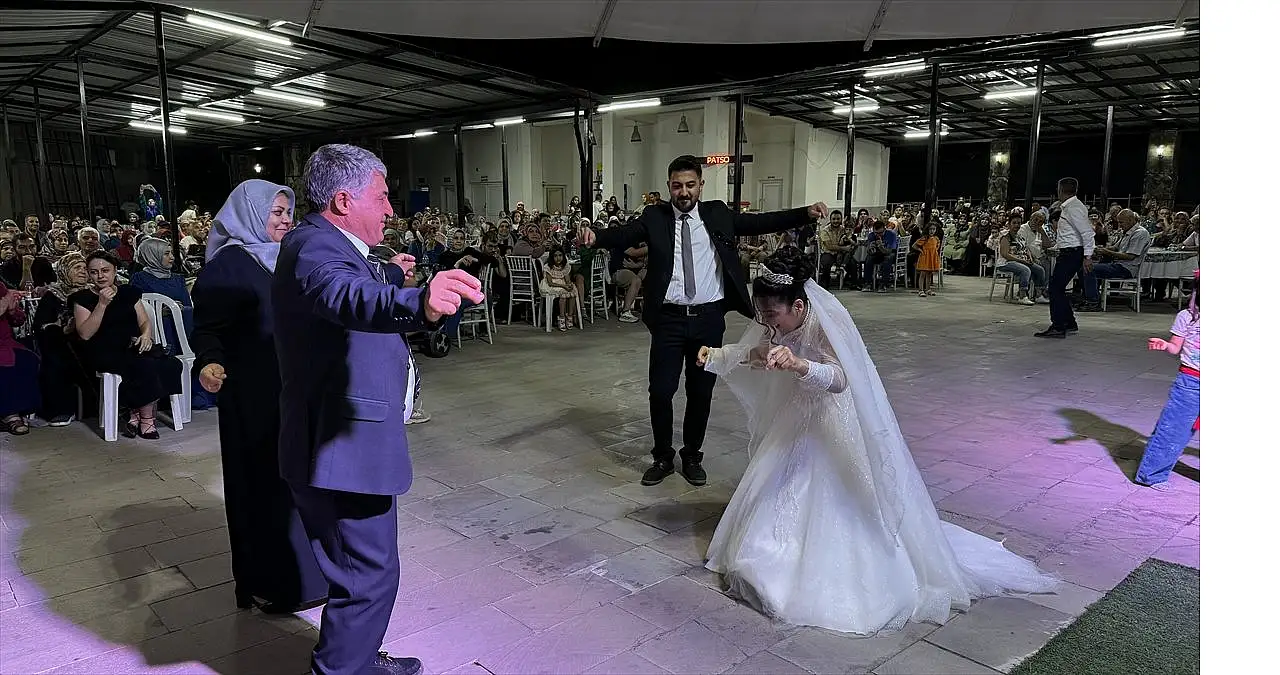 Emekli din görevlisi Veysel ile ev hanımı Havva Uyar, en büyük çocukları Ayşenur'un gelinlik giyme hayalini gerçeğe dönüştürmek için organizasyon düzenledi.Kuaförde hazırlıkları yapıldıktan sonra düğün salonuna getirilen Ayşenur, babasının kolunda yanan k