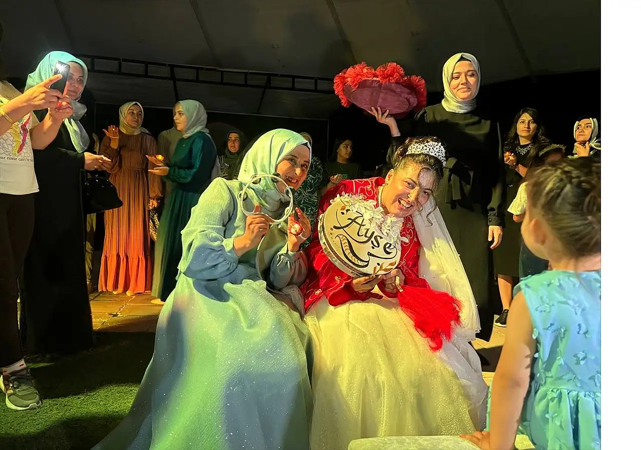 Takı töreninin de yapıldığı düğünde davetliler oyun havası eşliğinde oynadı.
