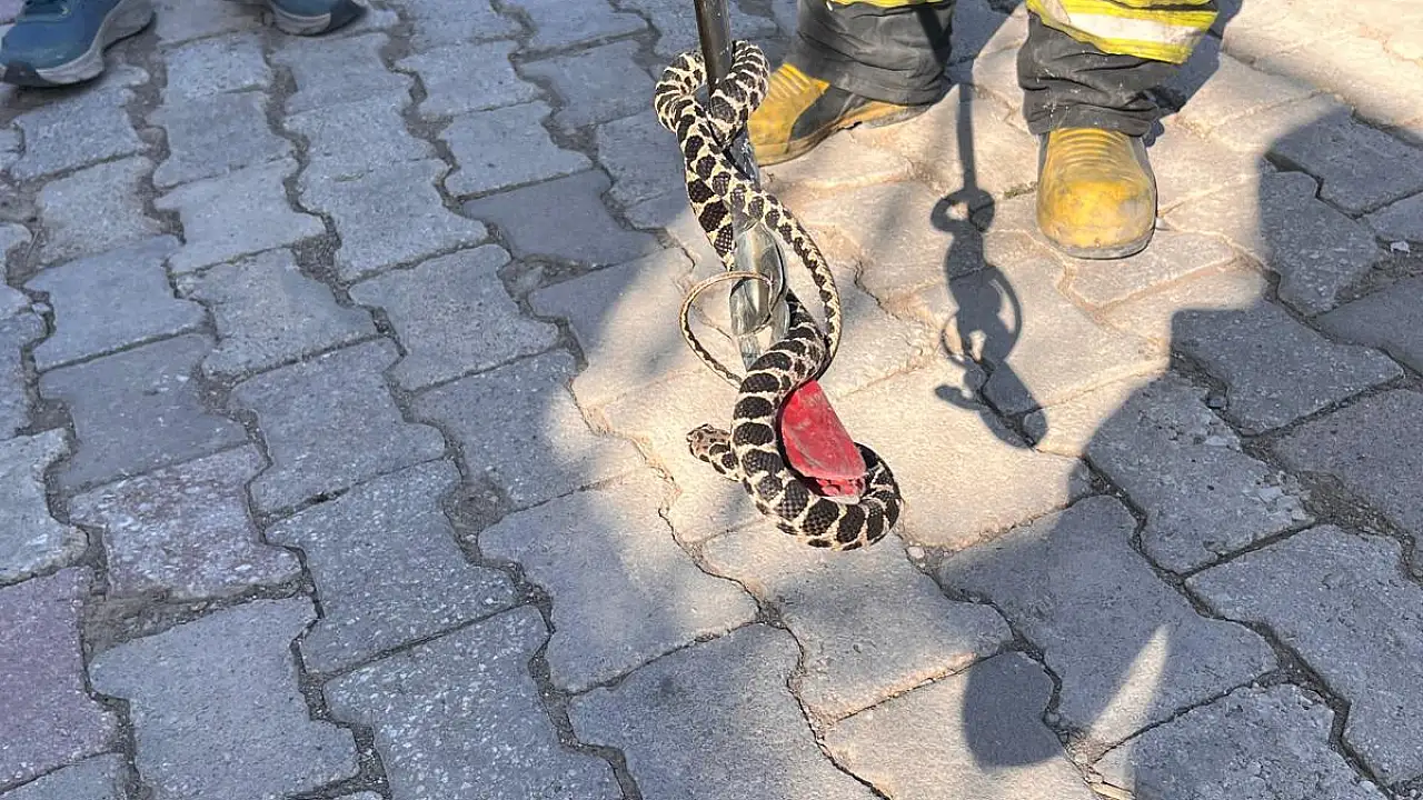 Adrese gelen itfaiye ekibi, yılanı yakalayıp doğaya bıraktı.