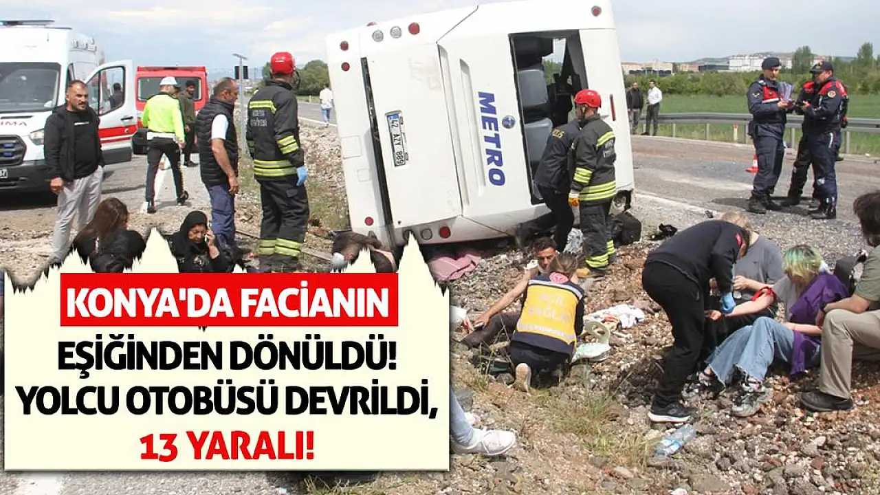 - Konya'da Facianın Eşiğinden Dönüldü! Yolcu Otobüsü Devrildi, 13 Yaralı!
