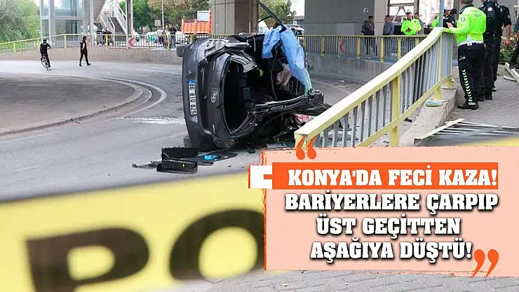 Konya'da feci kaza! Bariyerlere çarpıp üst geçitten aşağıya düştü!