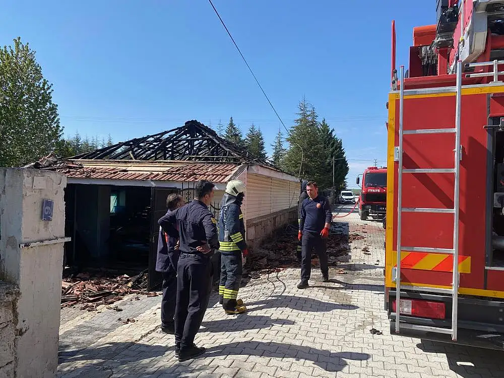 Konya'da garajın çatısında korkutan yangın