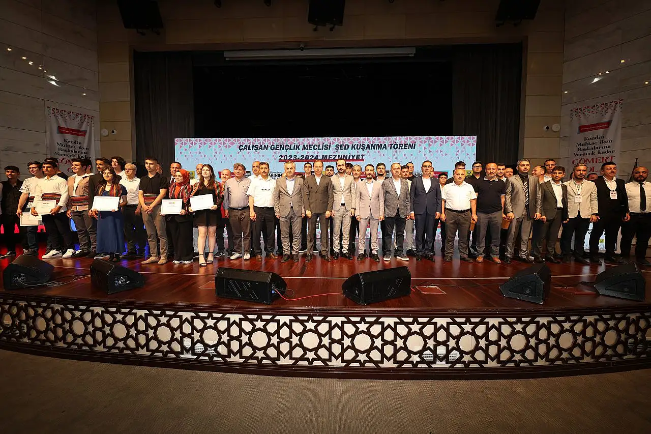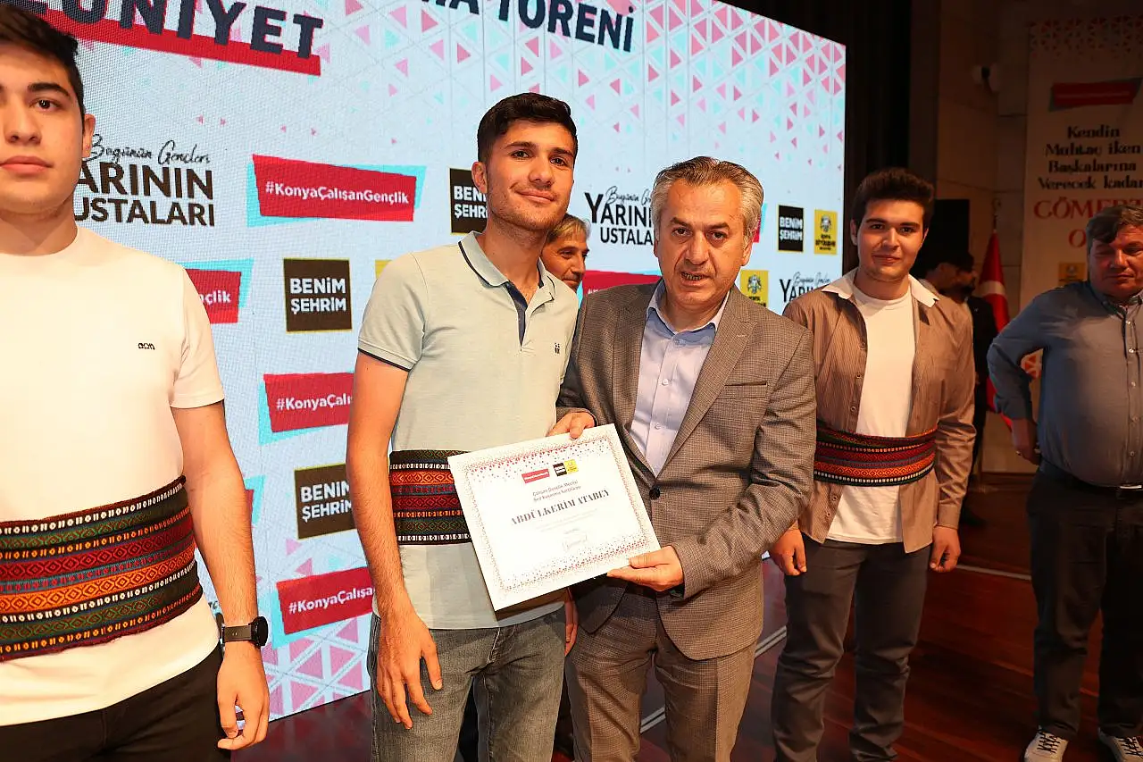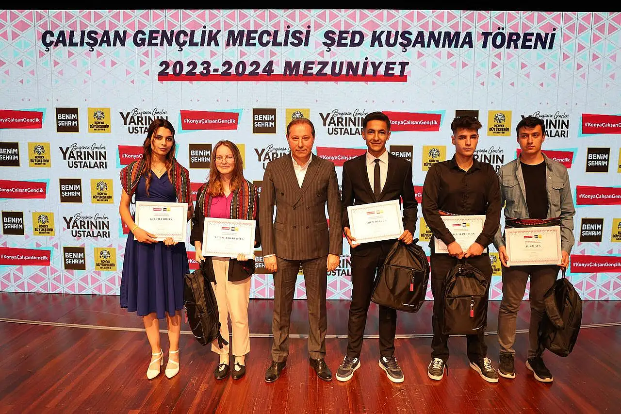 Konya Büyükşehir Belediyesi Çalışan Gençlik Meclisi, mesleki ve teknik liselerdeki bölümlerini dereceyle bitiren öğrenciler için şed kuşanma töreni düzenledi.