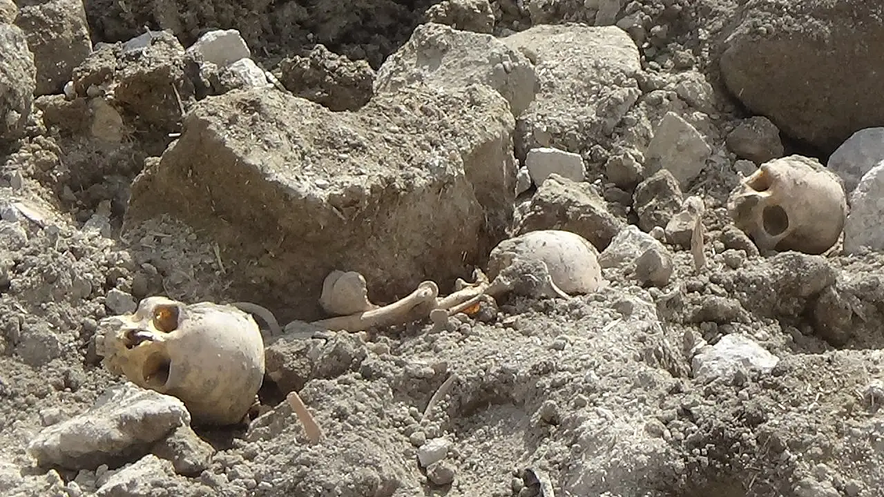 Durum hemen ekiplere bildirildi. Onarım sırasında ekipler tarafından 3 adet kafatası ile iskeletlere rastlandı.