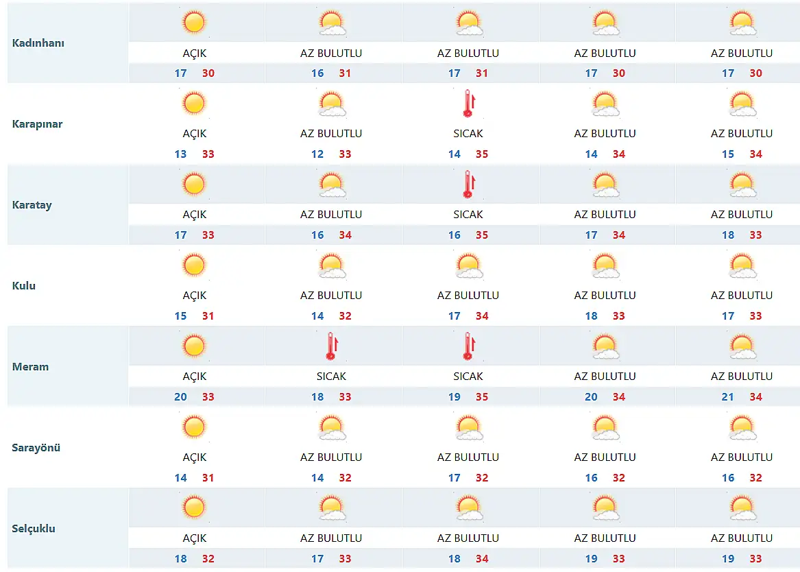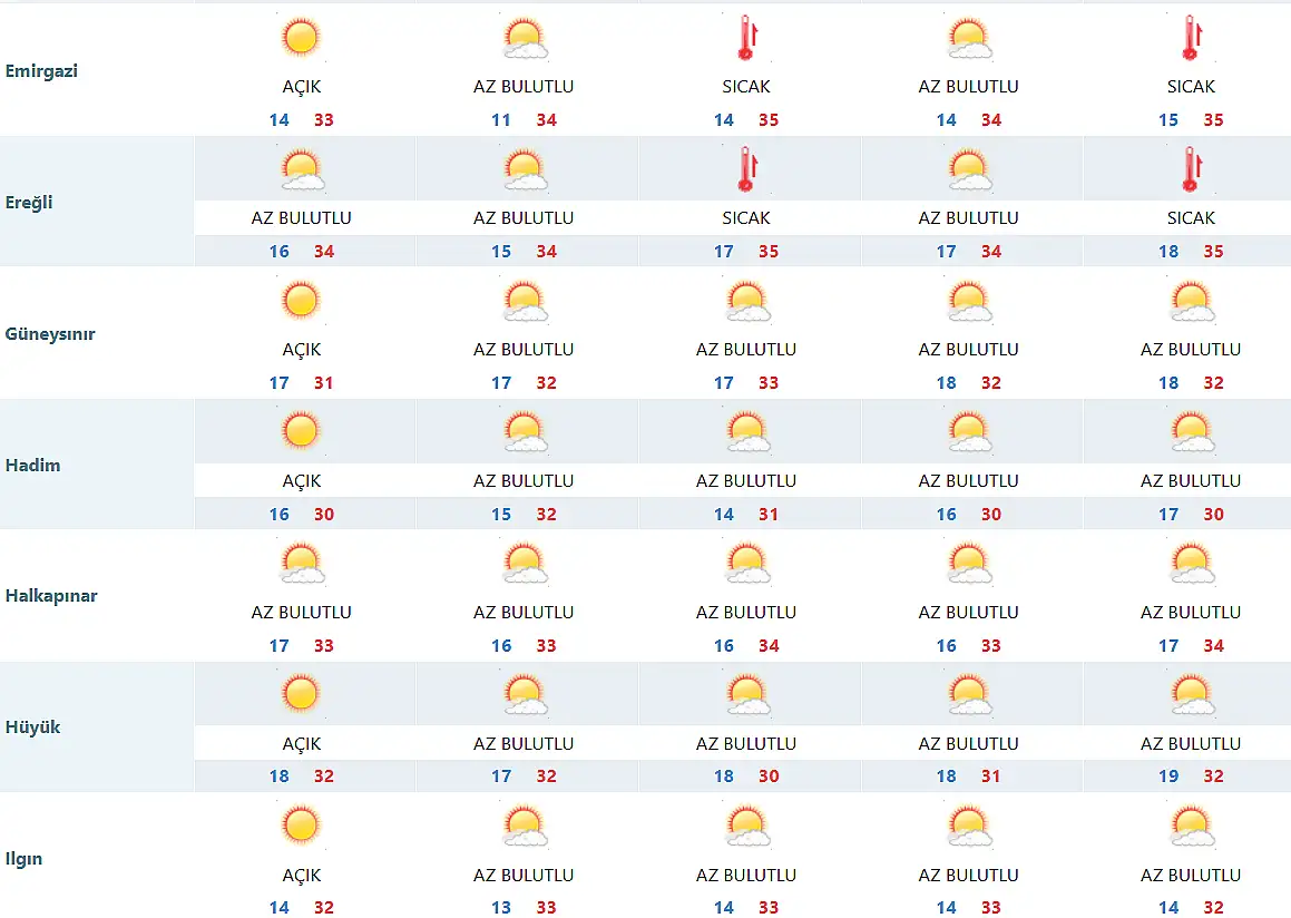 İŞTE KONYA VE İLÇELERİNDE HAVA DURUMU TAHMİNLERİ