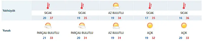 Meteoroloji Genel Müdürlüğü'nün verilerine göre yarın hava sıcaklığı en düşük 24, en yüksek 35 derece olacak. Önümüzdeki günlerde ise sıcaklığın artması bekleniyor.