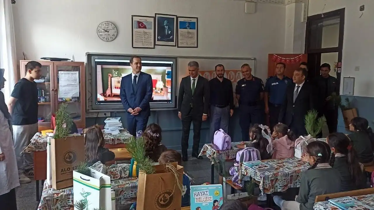 Kaymakam Arabacı ve Başkan Kısa, yeni ders yılının ilk zilini birlikte çaldı. İlk derste öğrenciler, orman yangınlarına karşı farkındalık oluşturmak amacıyla 'Yeşil Vatan' temasıyla fidanla buluşturuldu. Kaymakam Arabacı, yeni öğretim yılının hayırlı olmasını dileyerek, eğitim camiası mensuplarıyla yeni döneme ilişkin istişarelerde bulundu.