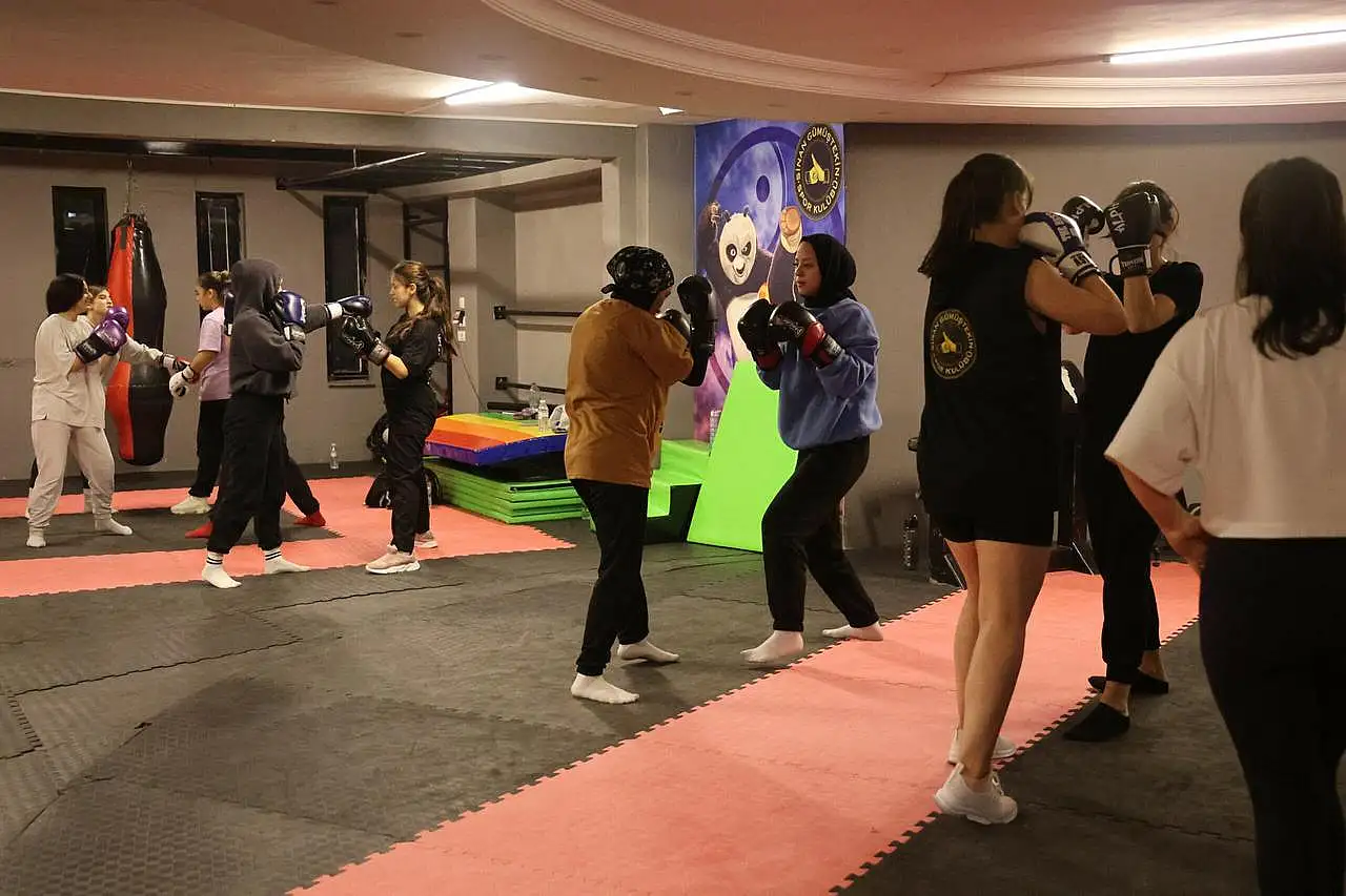 Spor salonu sahibi ve boks spor eğitmeni Sinan Gümüştekin, “Salonumuzda bir katı bayan grubu olarak ayırdık. Bu grubumuzda boks, kickboks branşlarında ve savunma tarafında temel gücümüzü arttırmak için hareketler yapıyoruz. Son zamanlarda ülkemizdeki kadına şiddet, cinayetler tabii ki hepimizin ortak problemi. Bunu tabii ki kadınlarımızın öz güvenini arttırarak daha cesur hale gelmeleri ve kendilerini korumalarını sağlamaktayız. Öğrendiğimiz tekniklerle birlikte de hem kendimizi savunup hem toplumsal olaylara karşı daha güçlü ve daha mücadele edebilir hale geldiğimiz zaman geri dönüşlerin harika olduğunu, toplumun güçlendiğini görüyoruz, beni onore ediyor” şeklinde konuştu.