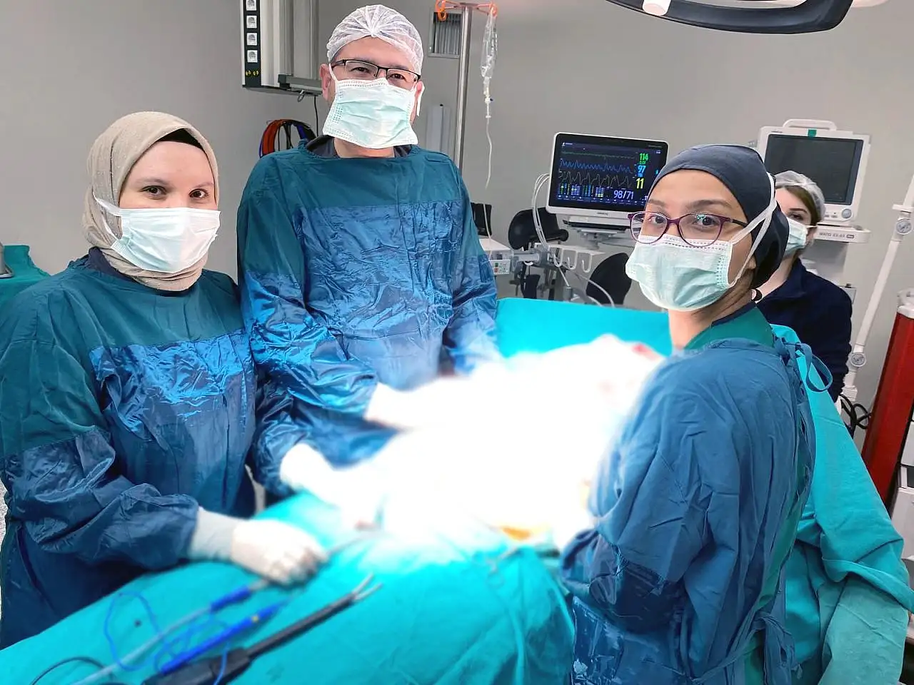 Ameliyata ilişkin bilgi veren Op. Dr. Uğur Mengeneci ise hastalığın teşhis edilme aşaması hakkında şunları kaydetti; “Hastamız şiddetli karın ağrısı şikâyeti ile acil servisimize getirildi. Çekilen tomografi sonucunda bağırsak düğümlenmesi olduğu belirlendi. Hastamızı acil bir şekilde ameliyata alarak bağırsağı besleyen damarı açtık ve içerisinde tıkanıklığa neden olan pıhtıyı aldık. Bağırsağı tekrar dikerek bağırsak kanlanmasını sağladık. Ayrıca hastalık nedeni ile 150 cm kadarlık bir kısmı iş göremez hale gelmiş olan bağırsağı opere ettik” diyerek yapılan cerrahi operasyon hakkında bilgi verdi.