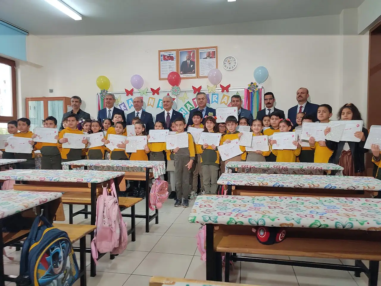 Vali Akın, okulda düzenlenen karne dağıtımının ardından öğretmenlerle bir araya gelerek öğretmenleri tebrik etti. Program toplu fotoğraf çekimi ile sona erdi.