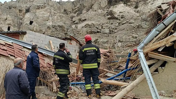 Olay, merkez Selçuklu ilçesi Küçükmuhsine Mahallesi'nde öğle saatlerinde yaşandı.Edinilen bilgiye göre, kaya düşmesi sonucu bir ahırın çöktüğü ve içerisinde büyükbaş hayvanların mahsur kaldığı bilgisi üzerine olay yerine itfaiye, AFAD ve jandarma ekipleri