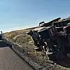 Konya’nın Kulu ilçesi yakınlarında kontrolden çıkarak devrilen tırın sürücüsü hafif yaralandı.