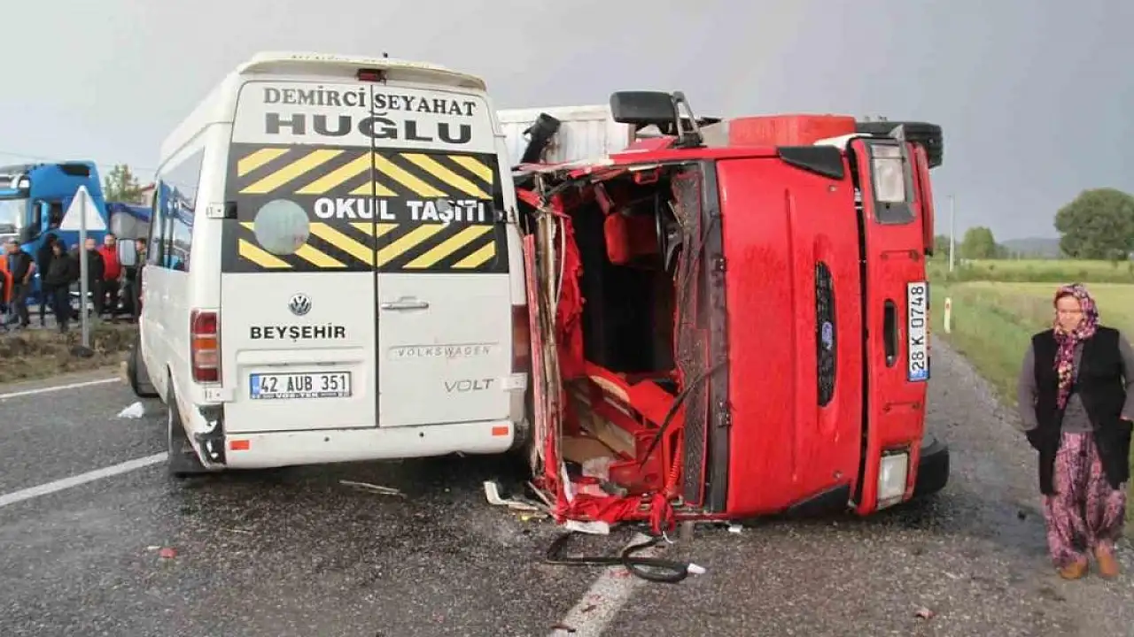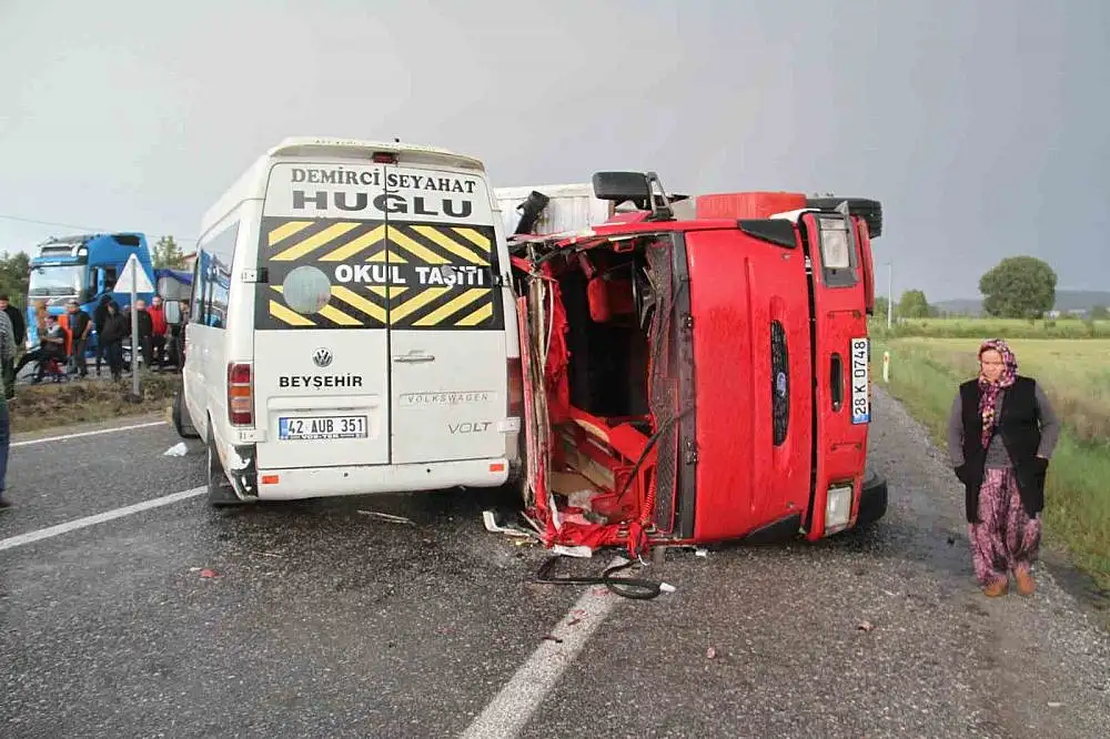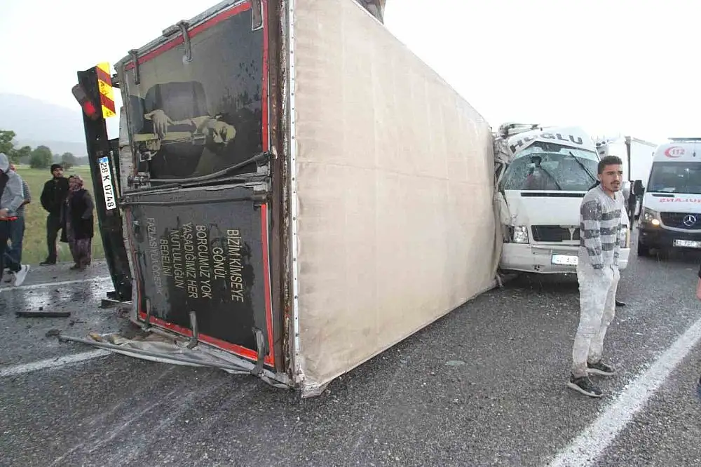 - Konya'da kaza! Devrilen kamyon minibüsle çarpıştı: 14 yaralı