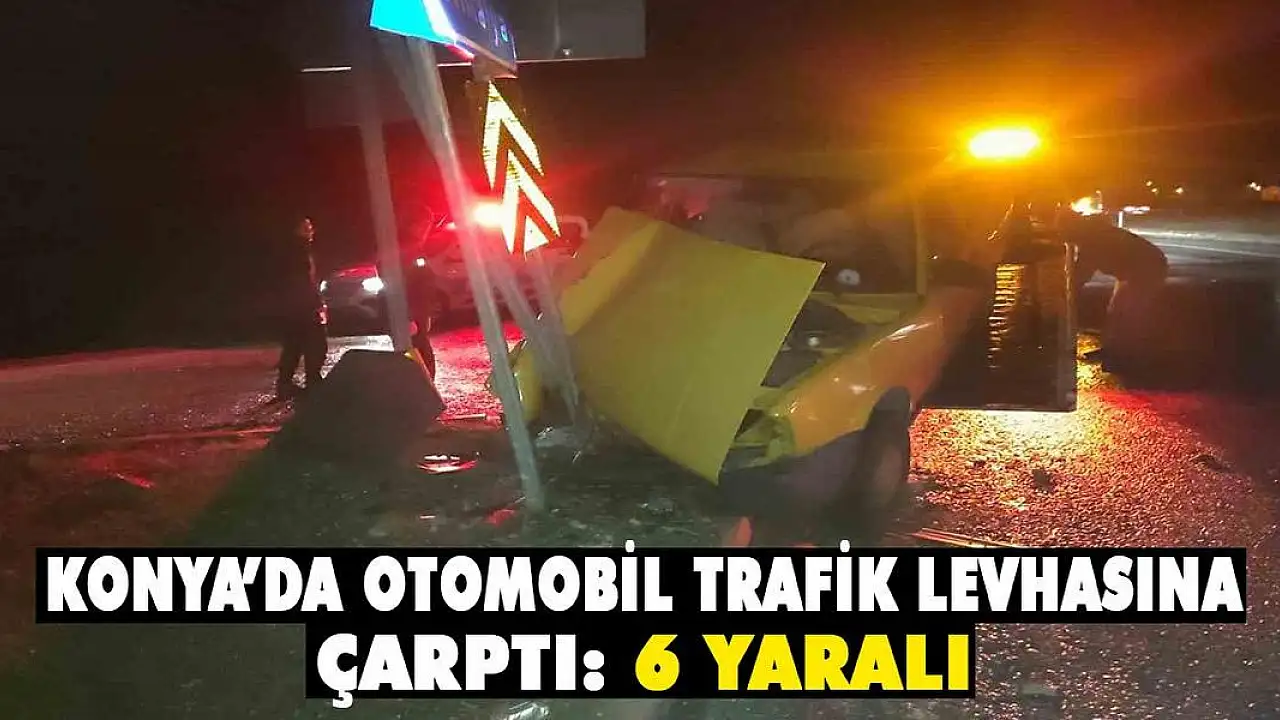 Konya'da kaza! Otomobil trafik levhasına çarptı: 6 yaralı