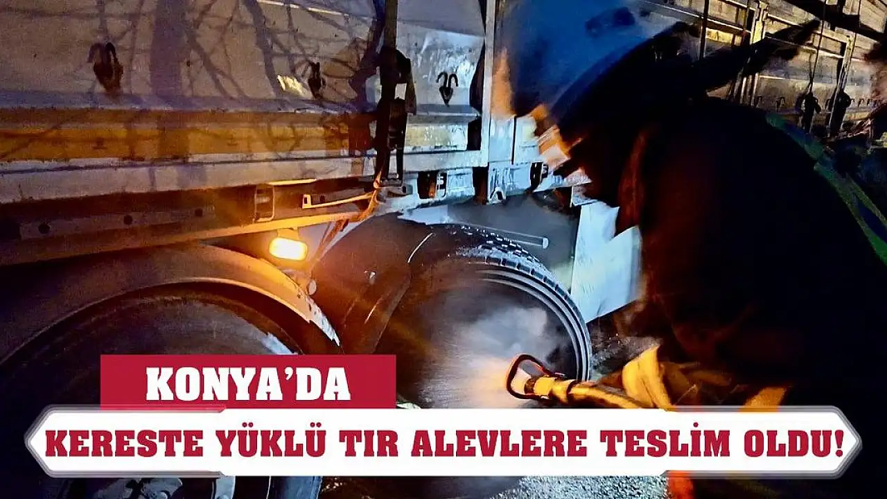 Konya'da kereste yüklü tır alevlere teslim oldu!