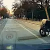 Yaşananlar ise caddede seyir halinde olan bir otomobilin araç kamerasına anbean yaşadı. Görüntüde elleri cebinde giden bisikletlinin dengesini kaybederek yola savrulması, otomobil sürücüsünün hızlı manevrası ile yanından geçmesi, daha sonra bisikletlinin toparlanarak kalkması ve caddeden gelen araçlar görülüyor.